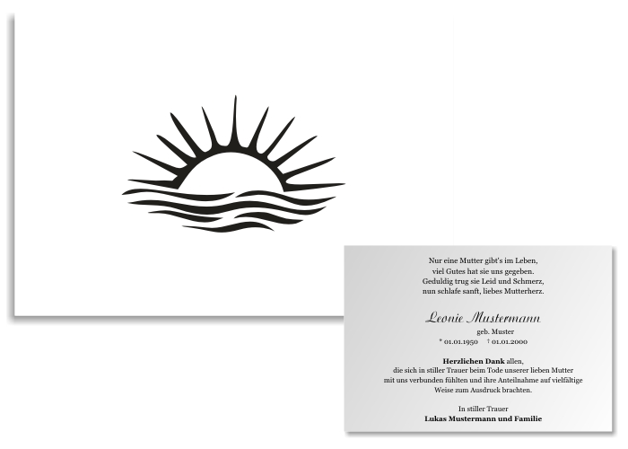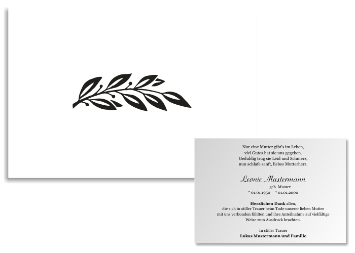 Persönliche Danksagung Trauer um Mutter, Vater, Oma und Opa. Schlichte Danksagung Trauer im Todesfall, Beerdigung, Trauerfall. Danksagungskarten Trauer, Dankeskarten, Trauerdanksagungen, Trauerkarten